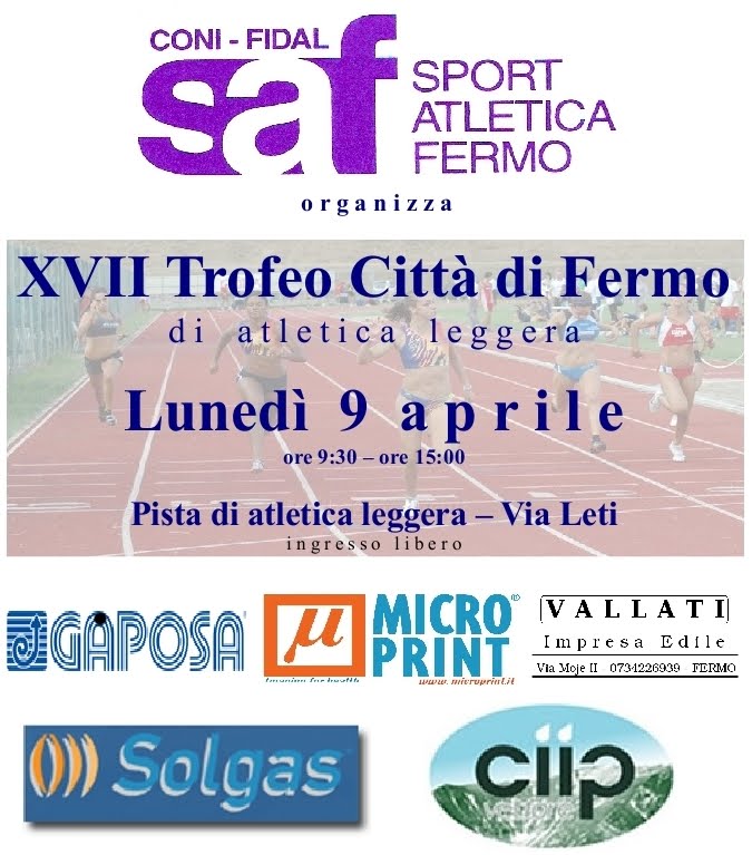 Il Trofeo Città di Fermo permette anche ai ragazzi iscritti da poco all'atletica leggera di mettersi alla prova. Teniamo molto a dare spazio al settore giovanile della SAF e la manifestazione permette ai nostri ragazzi di compiere le prime gare sulla pista di casa con la presenza di parenti, amici e genitori. Proprio loro saranno il futuro dell'atletica a Fermo, e porteranno il necessario ricambio generazionale una volta passati al settore agonistico